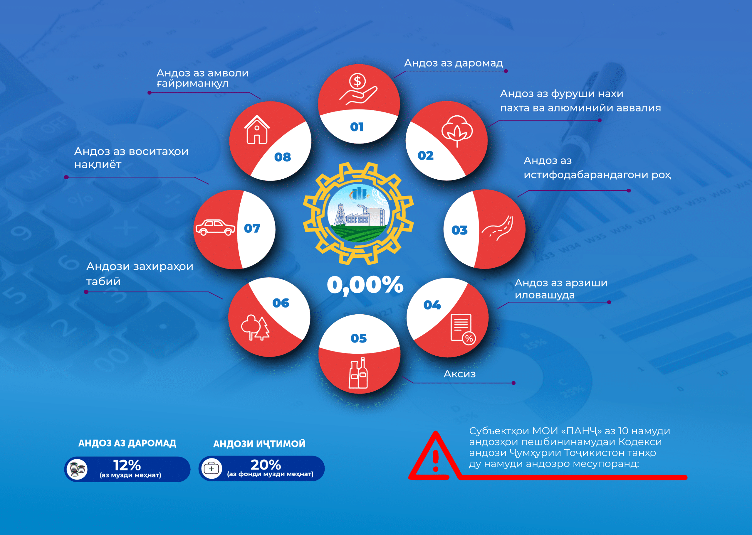 Субъектҳои МОИ «Панҷ» танҳо вазифаҳои агентҳои андозиро иҷро намуда, андози иҷтимоиро дар ҳаҷми 20 фоиз аз фонди музди меҳнат ва андоз аз даромади шахсони воқеиро дар ҳаҷми 12 фоиз нисбат ба кормандон нигоҳ дошта, ба буҷети давлатӣ пардохт менамоянд.